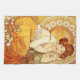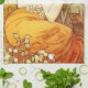 Alphonse Mucha Topaz kitchen towel. Oil painting on canvas. Czech artist Alphonse Mucha frequently painted allegories, and Topaz is from a series depicting gemstones as beautiful women. The painting features a young beautiful young woman wearing a deep topaz dress standing in from of an ornate jewelled background. A great gift for fans of Mucha, Art Nouveau, and vintage prints.