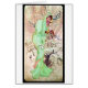 Alphonse Mucha Lady In Green Cape Shelters Herself From The Winter Cold Near A Snow Capped Bush As Three Birds Look On.