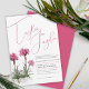 Fine art botanical alpine catchfly, (Alpina lychnis) plant in a rock crevice with scripted names in deep pink font wedding invitation. Personalize with your own wedding details. Plain pink on reverse. Print is taken from original hand painting in watercolour on hot pressed watercolor paper by artist Sarah Trett www.sarahtrett.com for www.mylittleeden.com only on Zazzle.