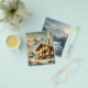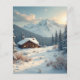 Alpine-inspired winter scene featuring a cozy chalet surrounded by snow-covered trees and majestic mountains. Perfect for rustic decor, seasonal art, and holiday inspiration!