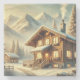 Alpine-inspired winter scene featuring a cozy chalet surrounded by snow-covered trees and majestic mountains. Perfect for rustic decor, seasonal art, and holiday inspiration!