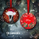 Hand painted portrait of this pretty Alpine dairy goat in her Santa Hat - on a deep red background with sparkling gold snowflakes - Goat Christmas ornaments for your Holiday gift giving, Christmas tree or window ornaments- customize the date on back