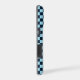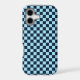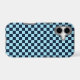A blue and black checkerboard pattern with evenly spaced squares. The repetitive design creates a sense of symmetry and optical illusion.