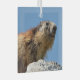 Closeup Alpine marmot (Marmota marmota) on rock on blue sky background, in the French Alps, Savoie department at La Plagne