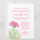 Beautiful alpine primula scotica pink floral wedding invite. Shaded in pink, green, brown and white. Edit this pink spring flower invitation with your own words. Unique design and original watercolor botanical fine art painting by Sarah Trett for www.mylittleeden.com