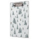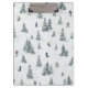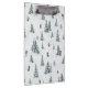 This clipboard features downhill skiers navigating through tree-lined slopes, with elusive yetis playfully hiding and darting across the scene.