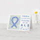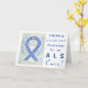 The guardian angel greeting or note card features the picture of a blue and white striped awareness ribbon angel painting. The card states "I Hope & Support Awareness for an ALS Cure!" Add your own optional words or message to the greeting card for personalized angel art cause awareness notecards! You can also remove the text for an art only angel note cards. The blue and white striped awareness angel ribbon painting art greeting cards can be customized with personalized messages to make great awareness cause art cards for fundraisers, awareness gifts, or other special events. Give this angel art card as an awareness ribbon gift for any occasion.
