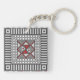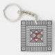 This concentric square features simple geometric patterns in shades of grey and red with the colours in the layers alternating when switching from the vertical to the horizontal.