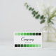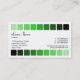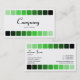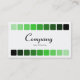 A stylish modern business/profile card template. Edged top and bottom with a row of nine round cornered squares going from a light green to black. Company details on the front with name and contact details on the back.