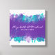 This fun purple and turquoise stretched canvas is meant to be used as an alternative wedding guest book. Purchase permanent markers in white, black, purple, turquoise, silver and gold. Ask your guest to sign their name or leave their well wishes all around your names on this fun canvas print. A perfect alternative the the usual guest book that you can use to decorate you new home.