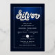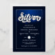 Invitation personnalisable pour une fête d'anniversaire de mariage argentée avec un effet de feuille d'argent et des tons bleus froids. L'effet de feuille sur la typographie "Silver" n'est pas réel.