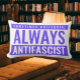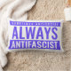 This throw pillow features the powerful statement **“Sometimes Antisocial. Always Antifascist.”** in **sharp blue typography** — clean, no background noise, just bold energy and unapologetic clarity.