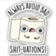Always Avoid Bad Shit-tuations Funny Toilet Paper Pun features a cute roll of toilet paper reminding us to always avoid bad situations. Perfect pun gift for family and friends who love cute toilet paper poop puns.