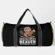 This humourous black and olive green duffle bag features a smiling beaver holding a log, with the clever phrase "ALWAYS BE YOURSELF UNLESS YOU CAN BE A BEAVER THEN ALWAYS BE A BEAVER." It's a fun and lighthearted way to show appreciation for these industrious and adorable animals. Perfect for anyone with a love for beavers or a unique sense of humour. Edit colour of the bag caps and body in the Design tool to your favored colours.