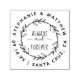 This stamp is ideal for any couple looking for a mailing accessory for their wedding cards. This design features your names, wedding date and wedding location in a circle around the outside of the stamp with a frame of rustic, hand-drawn leaves inside surrounding some rustic typography that reads "Always and Forever" in a blend of rustic script and all-caps lettering. Click the "personalize" button at the top to add your own details and then be sure to check the best size for your needs!