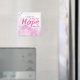 Beautiful watercolor stain in pink and white sets the stage in background for this beautiful HOPE design. Scripture from Psalm 71:14 reads, "I will always have HOPE." modern brush script with distressed edges (dark pink).