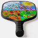 Winter, Spring, Summer, or Fall all you gotta do is call and I'll be there to play pickleball. Fun colourful pickleball paddle for yourself, your pickleball-loving friend, mom, dad, uncle, aunt, brother, sister, neighbour, grandpa, grandma, or work buddy who won't stop talking about pickleball. A colourful tree filled with pickleballs showing colours of the seasons with winter snowflakes, sunny spring skies, summer flowers, and pickleball pumpkins with pickleball paddles leaning against a tree.