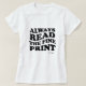 You're pregnant! Congratulations, now it's time for sharing your news with family, friends and co-workers. This modern chic Pregnancy announcement T-shirt are a great way to share your special news. Design feature with "Always Read The Fine Print", retro wave typography. Add your custom wording to this design by using the "Edit this design template" boxes on the right-hand side of the item or click the blue "Customize it" button to arrange the text, change the fonts and colours and to also add additional information or images to this design. Click "Customize Further" to open full editing options