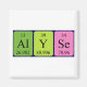Alyse spelled out as Al Y Se (Aluminum Yttrium Selenium) on a magnet for the scientist in you.