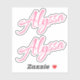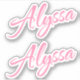 Alyssa name in cursive script font in pretty pink x2. Two copies of name.