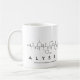 Alyssa spelled out in amino acids as A L Y S S A (Alanine Leucine Tyrosine Serine Serine Alanine) on a mug for the scientist in you.