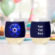 A light-coloured Star of David on a dark blue background. Hebrew text reads, "Am Yisrael Chai" (The people of Israel live!). Customize by adding your own text on the reverse side.