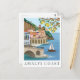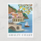 Embrace the sun-drenched spirit of Southern Italy with this vibrant travel postcard of Atrani on the Amalfi Coast. The illustration features the town's signature dramatic arches and pastel buildings nestled against rugged cliffs, all overlooking the sparkling turquoise waters of the Tyrrhenian Sea. Framed by lush lemon branches—a symbol of the region’s famous citrus groves—and a solitary sailboat gliding across the horizon, this piece perfectly captures the essence of "la dolce vita". With its warm, Mediterranean color palette and clean typography, this postcard is a beautiful keepsake for those who have wandered the winding streets of Italy’s smallest municipality or a charming gift for anyone dreaming of a seaside escape.