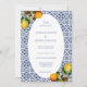 Amalfi Coast Italy Mediterranean Lemon wedding invitation, with blue tiles, lemon and oval frame.