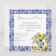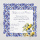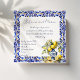 Amalfi Positano Vietri blue Majolica tiles lemons wedding editable template invitation instant digital download, Mediterranean themed blue white and yellow tiles with bunch of citrus with lemons and blooms in blue ceramics vase wedding invitation cards