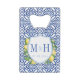 Ce design classique est composé d'un monogramme en crête de couple simple et élégant entouré de citrons d'aquarelle, de feuilles et de fleurs, avec arrière - plan d'impression de carreaux vintages bleu et blanc.