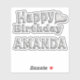Un très beau autocollant personnalisé pour Amanda. Le nom est disponible sous forme de texte et de Happy Birhtday en différentes tailles et en toute transparence. Parfait pour toi, ta meilleure amie, épouse, soeur, mère, tante, grand-mère, fiancée, cousine, partenaire de vie ou qui que tu veuilles faire avec un cadeau personnel et indivubiel. Regarde aussi dans notre magasin pour trouver d'autres produits sous ce nom comme cadeau. Vous trouverez beaucoup d'autres produits et designs personnalisés.