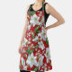 Elegant pattern of holly, amaryllis blossoms and little bird in white, reds, greys, greens on faux-textured red background, and matching green ties. Original design/illustration by Surface Pattern Designer L Diane Johnson.