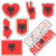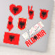 Amazing Albania Shapes National Symbols Sticker. Two country name stickers, one in the colours of the national flag and the other one covered in the Word Cloud with the words "Albania" written in the different alphabet forms and/or languages and fonts. All words are coloured with the national colours used on the flag of Albania, Beautiful heart, shield (escutcheon) and map filled with the representation of the Albania national flag. Hand sticker with the two fingers up, representing victory filled with the colours of the Albania national flag. The last two stickers are national flag of the Albania and the national Coat of Arms. This is the great set of superb stickers with most of them unique and hand drawn. All stickers are fully customizable using "Customize it!" feature. You can mix and match them as you wish. If you want multiple hearts but no shield fire away. Maybe you want only hand with the victory sign? Easy, remove everything else and make multiple copies of the hand. These grand stickers are the perfect sticky gift for any occasion. Fire away and stick them where your heart desire! © 2022 CountriesOfTheWorld