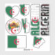 Amazing Algeria Shapes National Symbols Sticker. Two country name stickers, one in the colours of the national flag and the other one covered in the Word Cloud with the words "Algeria" written in the different alphabet forms and/or languages and fonts. All words are coloured with the national colours used on the flag of Algeria, Beautiful heart, shield (escutcheon) and map filled with the representation of the Algeria national flag. Hand sticker with the two fingers up, representing victory filled with the colours of the Algeria national flag. The last two stickers are national flag of the Algeria and the national Coat of Arms. This is the great set of superb stickers with most of them unique and hand drawn. All stickers are fully customizable using "Customize it!" feature. You can mix and match them as you wish. If you want multiple hearts but no shield fire away. Maybe you want only hand with the victory sign? Easy, remove everything else and make multiple copies of the hand. These grand stickers are the perfect sticky gift for any occasion. Fire away and stick them where your heart desire! © 2022 CountriesOfTheWorld