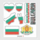 Amazing Bulgaria Shapes National Symbols Sticker. Two country name stickers, one in the colours of the national flag and the other one covered in the Word Cloud with the words "Bulgaria" written in the different alphabet forms and/or languages and fonts. All words are coloured with the national colours used on the flag of Bulgaria, Beautiful heart, shield (escutcheon) and map filled with the representation of the Bulgaria national flag. Hand sticker with the two fingers up, representing victory filled with the colours of the Bulgaria national flag. The last two stickers are national flag of the Bulgaria and the national Coat of Arms. This is the great set of superb stickers with most of them unique and hand drawn. All stickers are fully customizable using "Customize it!" feature. You can mix and match them as you wish. If you want multiple hearts but no shield fire away. Maybe you want only hand with the victory sign? Easy, remove everything else and make multiple copies of the hand. These grand stickers are the perfect sticky gift for any occasion. Fire away and stick them where your heart desire! © 2022 CountriesOfTheWorld