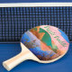 I painted this original acrylic landscape, which I titled “Water Reflections,” to fill a gap on my wall, I used acrylics on a very thick lining paper and outlined the colours with gold paint . The original art image on this unique ping pong paddle comes from my imagination but is based on the places I’d been to around Epping forest, there’s some lovely lakes amongst the woodlands. The picture is vibrant colours that are very visable on this paddle. This modern art sunset landscape painting is totally original and makes a one of a kind contempory ping pong bat that can be customized with your own name or club name.