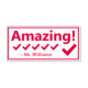 This inspiring rubber stamp design features the positive message "Amazing!" and a customized teacher's or educator's name. It also features a decorative check mark icon. It could be used by a school teacher, educator, instructor, or tutor when marking assignments, to acknowledge that a student has done well.