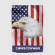 Amazing head of a bald eagle over the American flag. A patriotic golf towel for anyone. Customizable template name at the bottom. You can change or delete the name. You can transfer this design to a number of other towels. If you need to change the font, font colour, the colour of the background; if you need to adjust the image to the printable area, please, use the "Edit Design" button or "Click to customize further" under the "Details" link. This beautiful towel can be found in the "Sports" collection or in the "Sports, Toys & Games"-->"Sports & Outdoor"-->"Sports Equipment"-->"Golf"-->"Golf Towels" department. A choice of 16 eagles on sixteen golf towels. Buy one, have fun, and be happy.