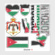 Amazing Jordan Shapes National Symbols Sticker. Two country name stickers, one in the colours of the national flag and the other one covered in the Word Cloud with the words "Jordan" written in the different alphabet forms and/or languages and fonts. All words are coloured with the national colours used on the flag of Jordan, Beautiful heart, shield (escutcheon) and map filled with the representation of the Jordan national flag. Hand sticker with the two fingers up, representing victory filled with the colours of the Jordan national flag. The last two stickers are national flag of the Jordan and the national Coat of Arms. This is the great set of superb stickers with most of them unique and hand drawn. All stickers are fully customizable using "Customize it!" feature. You can mix and match them as you wish. If you want multiple hearts but no shield fire away. Maybe you want only hand with the victory sign? Easy, remove everything else and make multiple copies of the hand. These grand stickers are the perfect sticky gift for any occasion. Fire away and stick them where your heart desire! © 2022 CountriesOfTheWorld