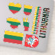 Amazing Lithuania Shapes National Symbols Sticker. Two country name stickers, one in the colours of the national flag and the other one covered in the Word Cloud with the words "Lithuania" written in the different alphabet forms and/or languages and fonts. All words are coloured with the national colours used on the flag of Lithuania, Beautiful heart, shield (escutcheon) and map filled with the representation of the Lithuania national flag. Hand sticker with the two fingers up, representing victory filled with the colours of the Lithuania national flag. The last two stickers are national flag of the Lithuania and the national Coat of Arms. This is the great set of superb stickers with most of them unique and hand drawn. All stickers are fully customizable using "Customize it!" feature. You can mix and match them as you wish. If you want multiple hearts but no shield fire away. Maybe you want only hand with the victory sign? Easy, remove everything else and make multiple copies of the hand. These grand stickers are the perfect sticky gift for any occasion. Fire away and stick them where your heart desire! © 2022 CountriesOfTheWorld