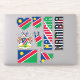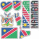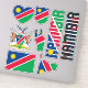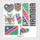 Amazing Namibia Shapes National Symbols Sticker. Two country name stickers, one in the colours of the national flag and the other one covered in the Word Cloud with the words "Namibia" written in the different alphabet forms and/or languages and fonts. All words are coloured with the national colours used on the flag of Namibia, Beautiful heart, shield (escutcheon) and map filled with the representation of the Namibia national flag. Hand sticker with the two fingers up, representing victory filled with the colours of the Namibia national flag. The last two stickers are national flag of the Namibia and the national Coat of Arms. This is the great set of superb stickers with most of them unique and hand drawn. All stickers are fully customizable using "Customize it!" feature. You can mix and match them as you wish. If you want multiple hearts but no shield fire away. Maybe you want only hand with the victory sign? Easy, remove everything else and make multiple copies of the hand. These grand stickers are the perfect sticky gift for any occasion. Fire away and stick them where your heart desire! © 2022 CountriesOfTheWorld