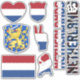 Amazing Netherlands Shapes National Symbols Sticker. Two country name stickers, one in the colours of the national flag and the other one covered in the Word Cloud with the words "Netherlands" written in the different alphabet forms and/or languages and fonts. All words are coloured with the national colours used on the flag of Netherlands, Beautiful heart, shield (escutcheon) and map filled with the representation of the Netherlands national flag. Hand sticker with the two fingers up, representing victory filled with the colours of the Netherlands national flag. The last two stickers are national flag of the Netherlands and the national Coat of Arms. This is the great set of superb stickers with most of them unique and hand drawn. All stickers are fully customizable using "Customize it!" feature. You can mix and match them as you wish. If you want multiple hearts but no shield fire away. Maybe you want only hand with the victory sign? Easy, remove everything else and make multiple copies of the hand. These grand stickers are the perfect sticky gift for any occasion. Fire away and stick them where your heart desire! © 2022 CountriesOfTheWorld
