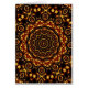 An attractive abstract kaleidoscopic mandala design in gold, fiery copper reds and black. Perhaps reminiscent of a domed ornamented ceiling of some kind of temple, cathedral or mosque. Some of the shapes look like the eye like motifs in peacock feather displays, Card is pale yellow inside (customizable) and has been left blank for your message or custom greeting.