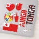 Amazing Tonga Shapes National Symbols Sticker. Two country name stickers, one in the colours of the national flag and the other one covered in the Word Cloud with the words "Tonga" written in the different alphabet forms and/or languages and fonts. All words are coloured with the national colours used on the flag of Tonga, Beautiful heart, shield (escutcheon) and map filled with the representation of the Tonga national flag. Hand sticker with the two fingers up, representing victory filled with the colours of the Tonga national flag. The last two stickers are national flag of the Tonga and the national Coat of Arms. This is the great set of superb stickers with most of them unique and hand drawn. All stickers are fully customizable using "Customize it!" feature. You can mix and match them as you wish. If you want multiple hearts but no shield fire away. Maybe you want only hand with the victory sign? Easy, remove everything else and make multiple copies of the hand. These grand stickers are the perfect sticky gift for any occasion. Fire away and stick them where your heart desire! © 2022 CountriesOfTheWorld