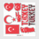 Amazing Turkey Shapes National Symbols Sticker. Two country name stickers, one in the colours of the national flag and the other one covered in the Word Cloud with the words "Turkey" written in the different alphabet forms and/or languages and fonts. All words are coloured with the national colours used on the flag of Turkey, Beautiful heart, shield (escutcheon) and map filled with the representation of the Turkey national flag. Hand sticker with the two fingers up, representing victory filled with the colours of the Turkey national flag. The last two stickers are national flag of the Turkey and the national Coat of Arms. This is the great set of superb stickers with most of them unique and hand drawn. All stickers are fully customizable using "Customize it!" feature. You can mix and match them as you wish. If you want multiple hearts but no shield fire away. Maybe you want only hand with the victory sign? Easy, remove everything else and make multiple copies of the hand. These grand stickers are the perfect sticky gift for any occasion. Fire away and stick them where your heart desire! © 2023 CountriesOfTheWorld