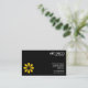 A clear stylish and attractive business card template with a simple but attention grabbing art deco style flower or star symbol. Main company details on the front, with name and personal contact on the back, on a grey background with a white version of the symbol.