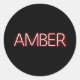 Amber name in glowing neon lights novelty classic round sticker