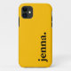 Case-Mate iPhone case in amber yellow with personalized name. Bright and elegant, a stylish accessory that blends function with individuality.