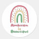 Ambition is beautiful motivational boho rainbow classic round sticker