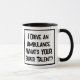 Funny slogan on a mug that says "I Drive an Ambulance. what's YOUR super talent?". Two Tone Mug for an Ambulance Driver or Paramedic. Black and white bold text.